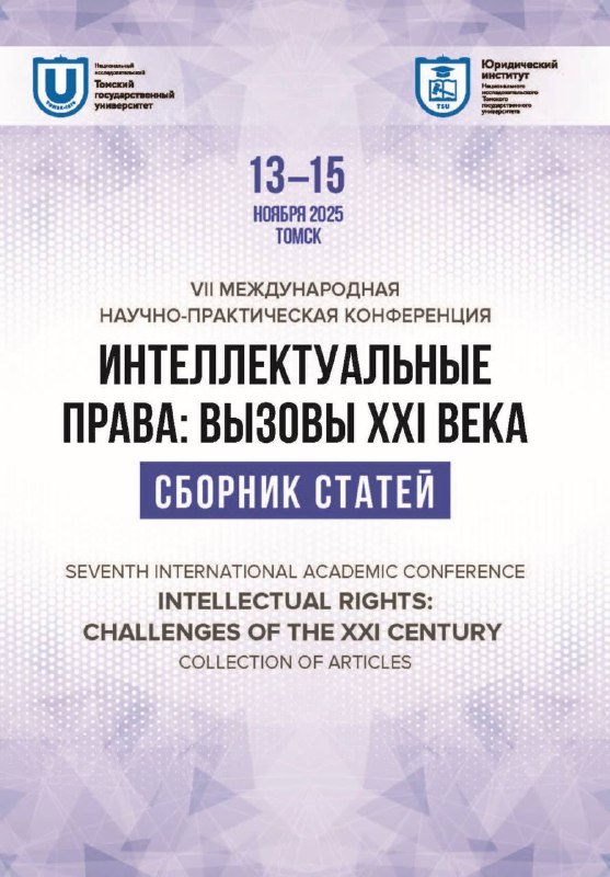 Уважаемые коллеги, хотим поделиться с вами новостью о том, что вышел докладов VII Международной научно-практической конференции «Интеллектуальные права: вызовы XXI века», состоявшейся на площадке Томского государственного университета 13-15 ноября 2025 года.