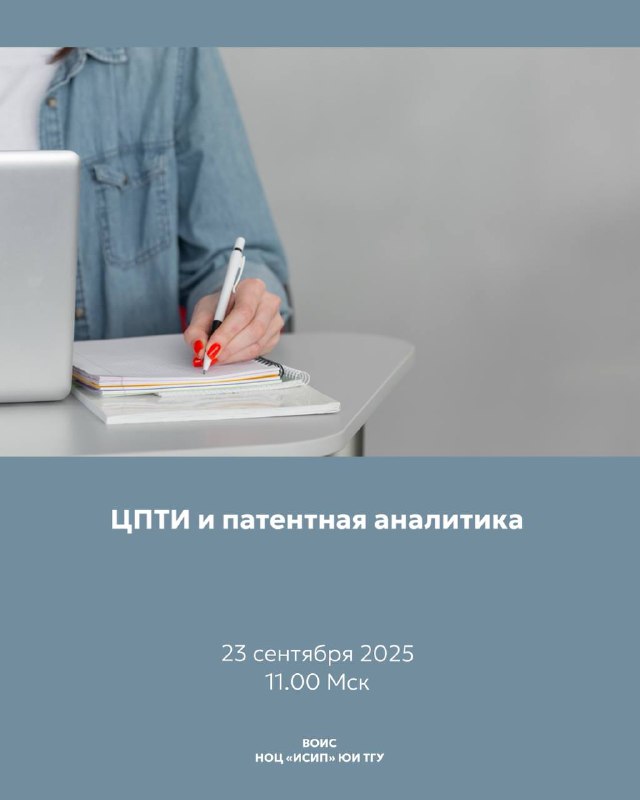 Приглашаем вас присоединиться к участию в обучающем семинаре по теме «ЦПТИ и патентная аналитика» Когда? 23 сентября 2025 года. Во сколько? В 11.00 по Москве
