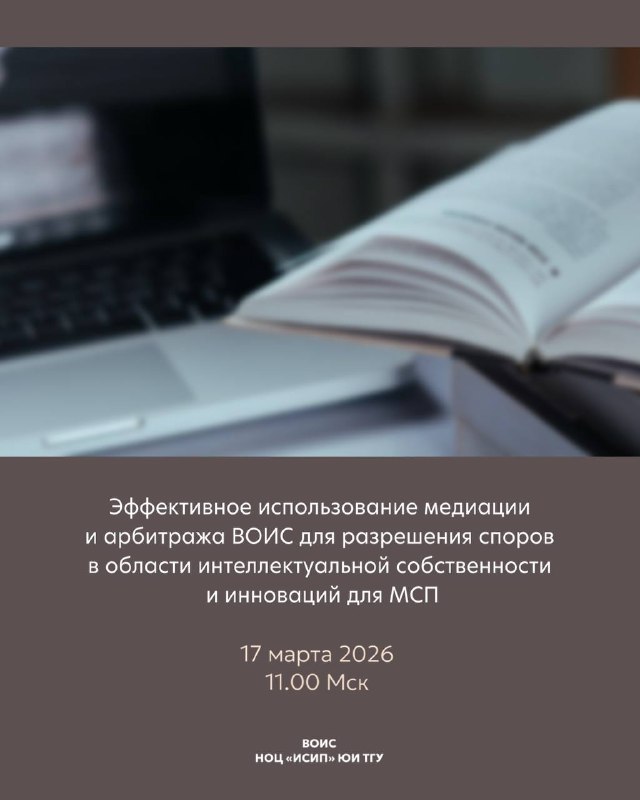 Уважаемые коллеги! Приглашаем вас присоединиться к участию в обучающем семинаре по теме «Эффективное использование медиации и арбитража ВОИС для разрешения споров в области интеллектуальной собственности